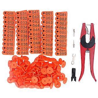 100 Sets Livestock Ear Tag Kit Number Animal Ear Tag with Applicator for Cattle Horse Pig Sheep Orange Ear Tag with Red Pliers with 2 Ear Tag Needle