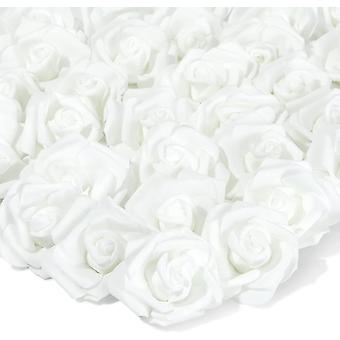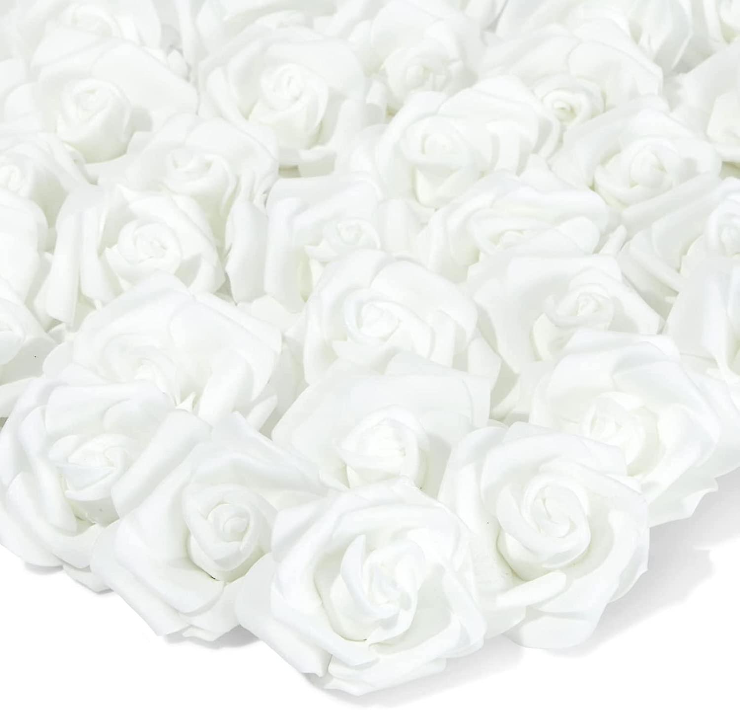 100 Pack Stemless Faux Roses, 3 Inch White Flowers Artificial For Decorations, Crafts, Wedding Receptions