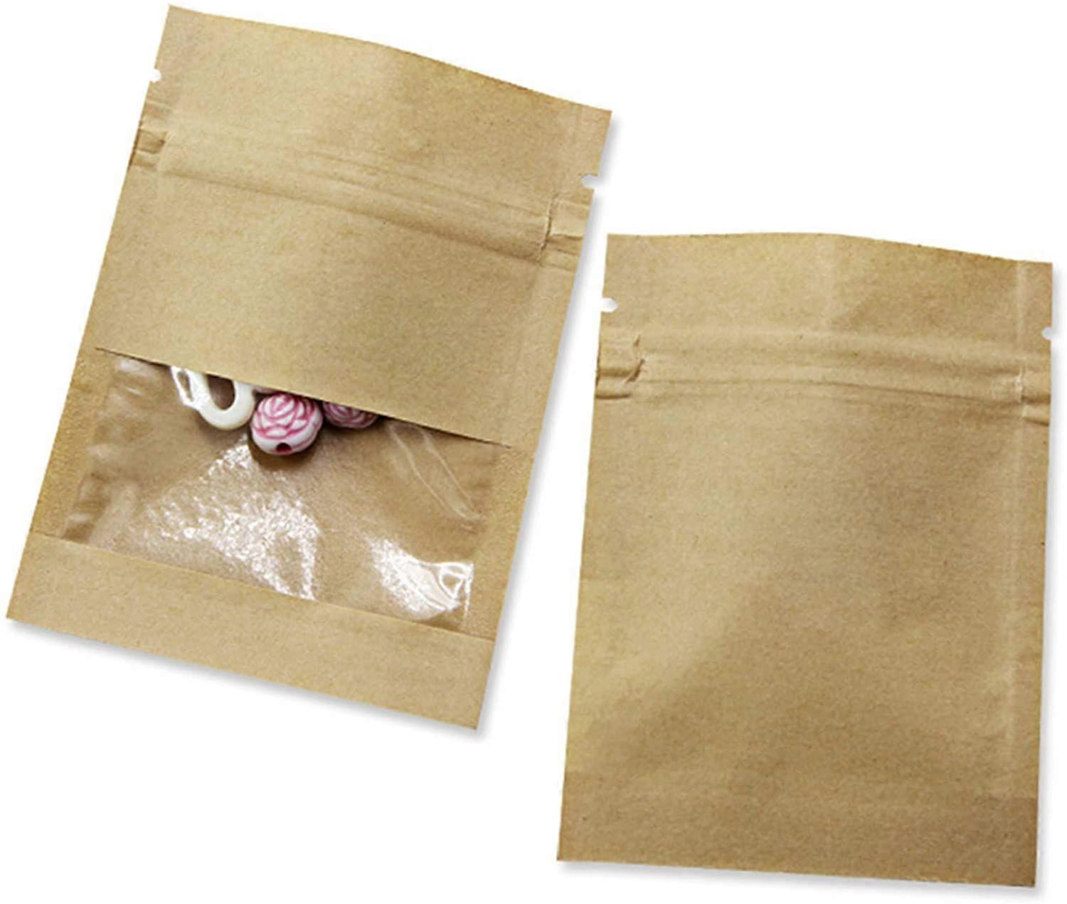 100 Pack Clear Window Airtight Brown Paper for Zip Food Storage13x18CM