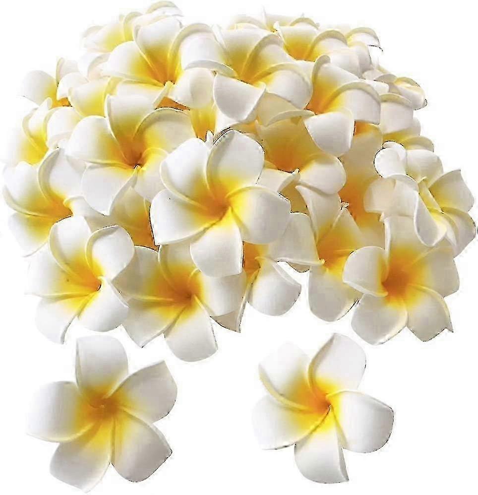 100 Pack White Foam Hawaiian Frangipani Artificial Plumeria Flower Petals Cap Hair Hat Wreath Floral Diy Home Wedding Decoration 5Cm SZRH A-C