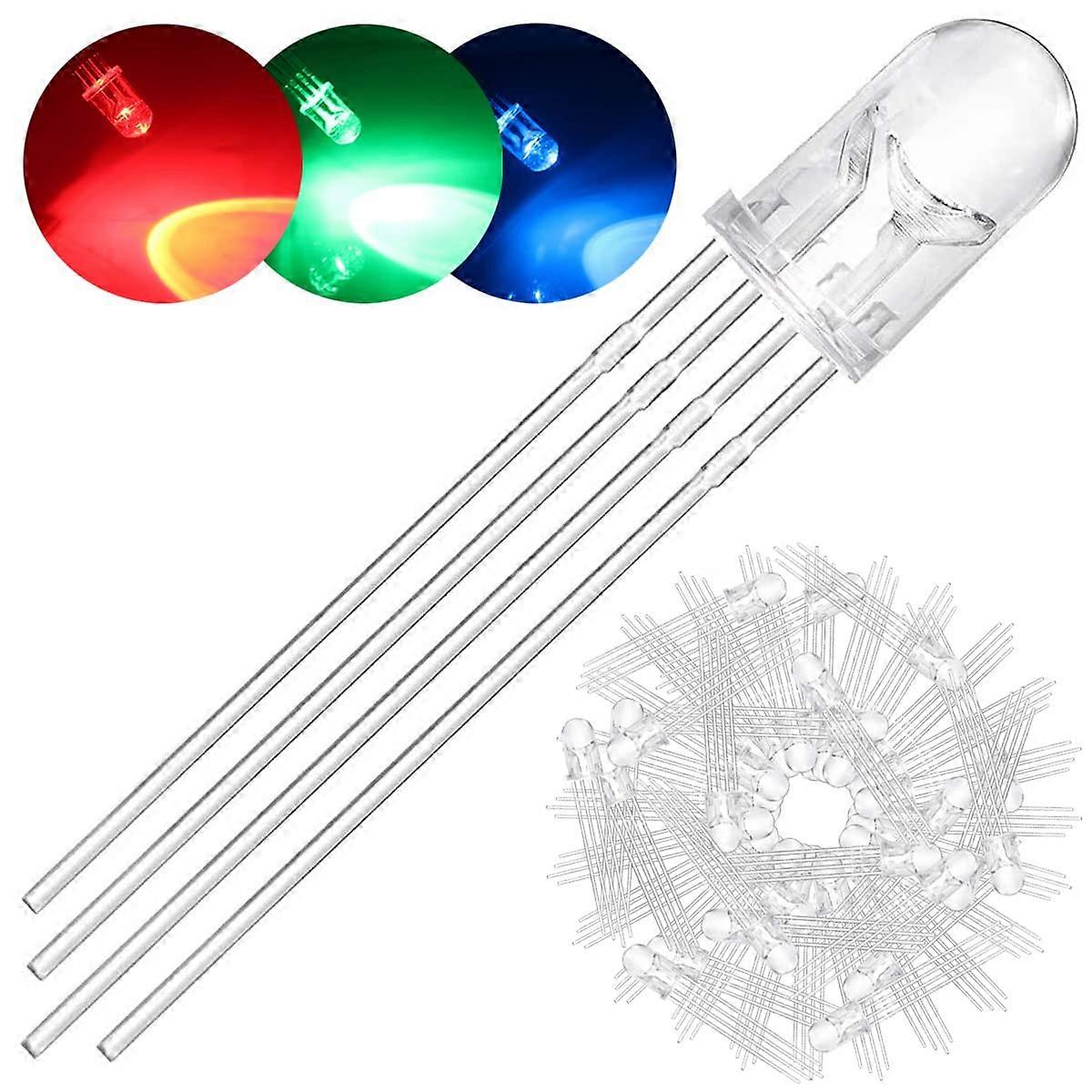 100-pack 5 mm LEDs with common cathode, DC 3 V, 20 mA, RGB three-color (red/green/blue)