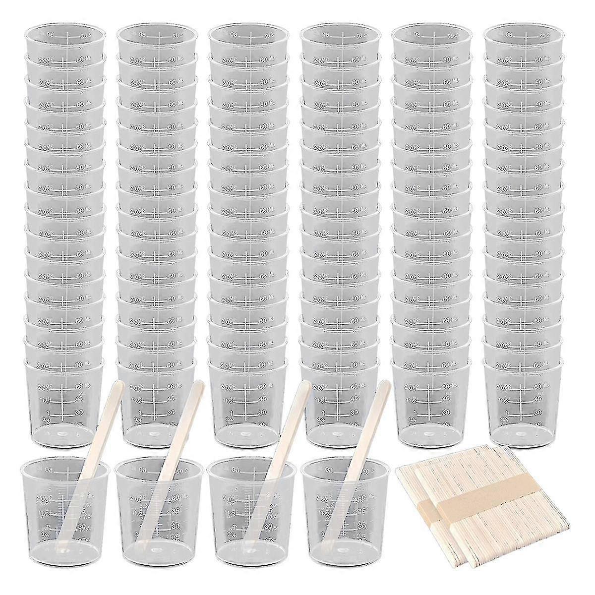 100 Pack 60ml/2oz Plastic Graduated Cups Transparent Scale Cups Clear Epoxy Mixing Cups With 100 Pc
