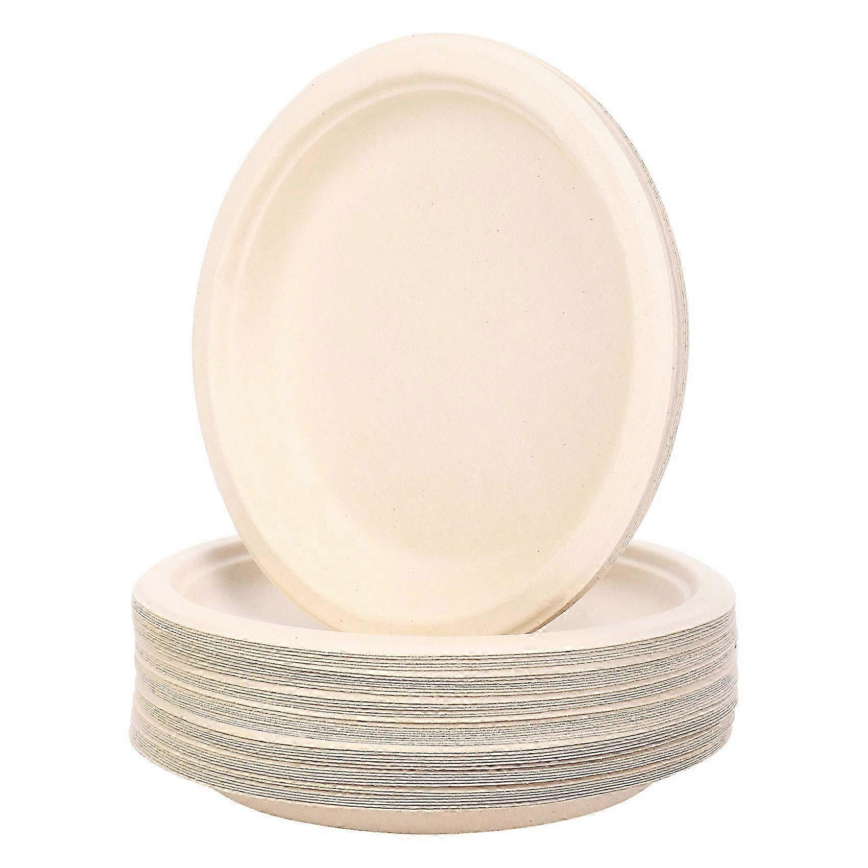 100 Pack 7in Compostable Disposable Round Bagasse Paper Plates,Biodegradable Sugarcane Fibre