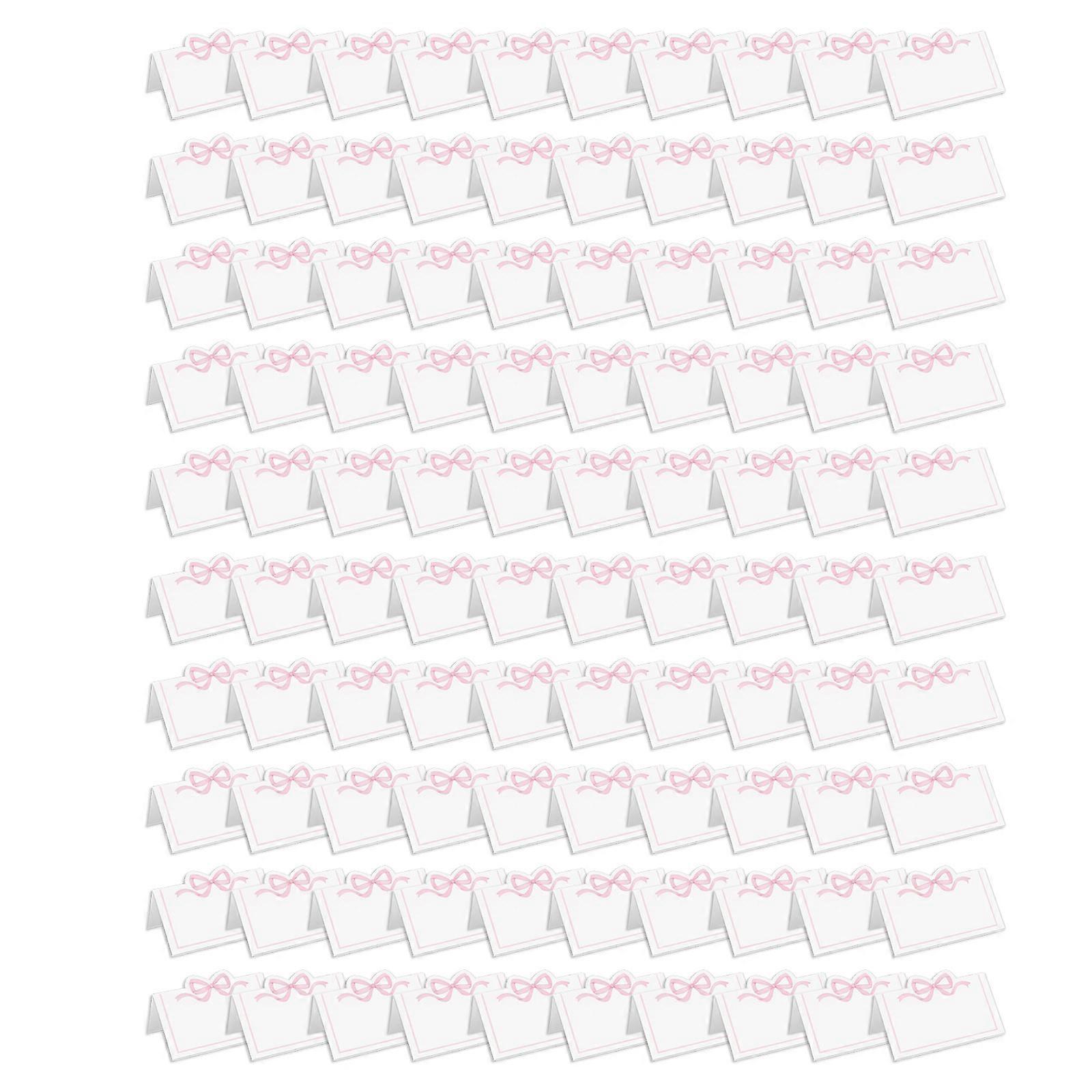 Pack of 100 Pink Bowknot Place Cards Seating Cards Blank Seat Allocation Labels for Weddings and Social Gatherings Pink
