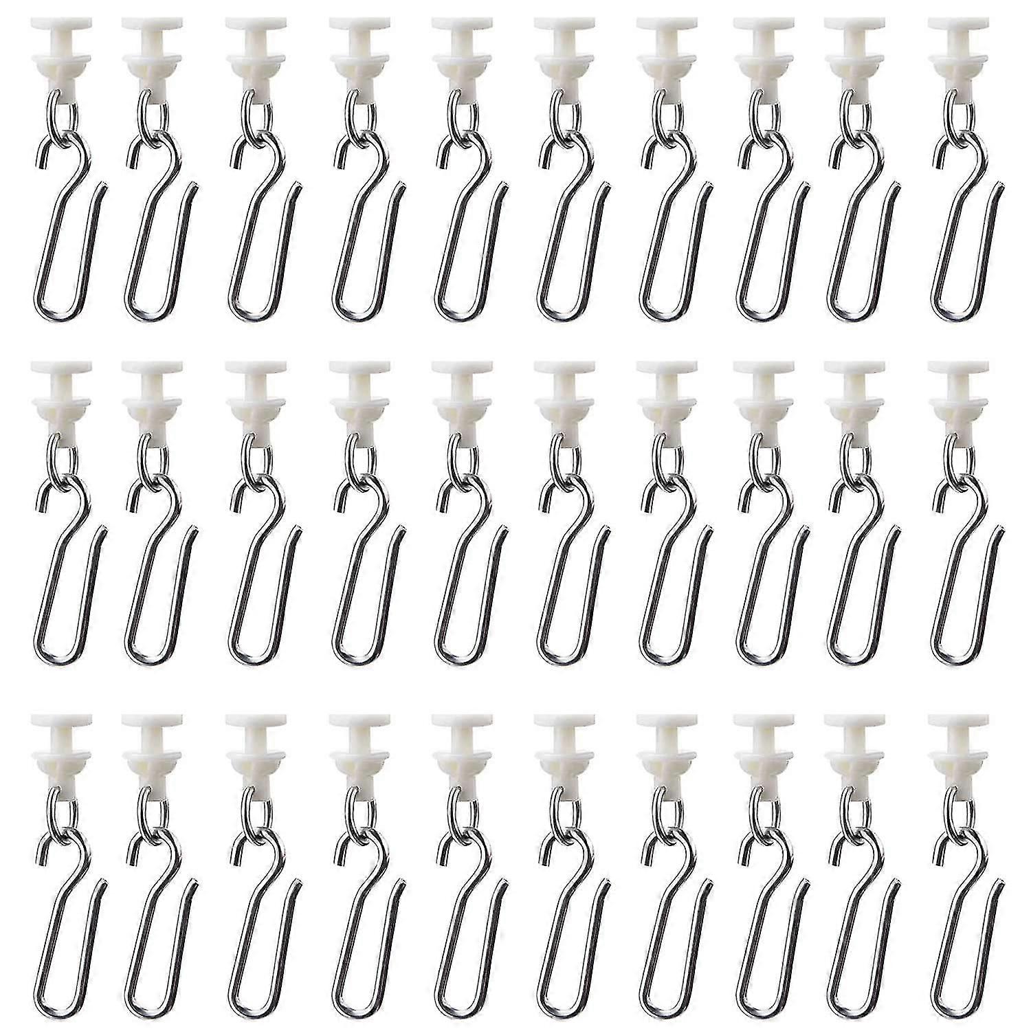 Curtain accessories] You will receive a total of 100 sets of curtain accessories, including 50 curtain hooks and 50 curtain pulleys. A sufficient number to fully install your curtains. Quality MaterialThe curtain pulleys are made of plastic and the curtain hooks are made of stainless steel, which are not easily damaged, reusable and noiseless to install. SizeUsing the standard size of curtain slider and curtain hooks, the hook size is 10*36mm and the slider size is 10.8*22mm, suitable for curtain track use. [Easy to install] It is simple and easy to install the curtain hooks, just hang the slider and then connect the hooks to the curtain, the rail can easily slide the curtain, making it easier to open and close the curtain. [Wide Application] These curtain track hooks are suitable for most standard curtain rods and can be used for most curtains, shower curtains, drapes, door curtains and French curtains.