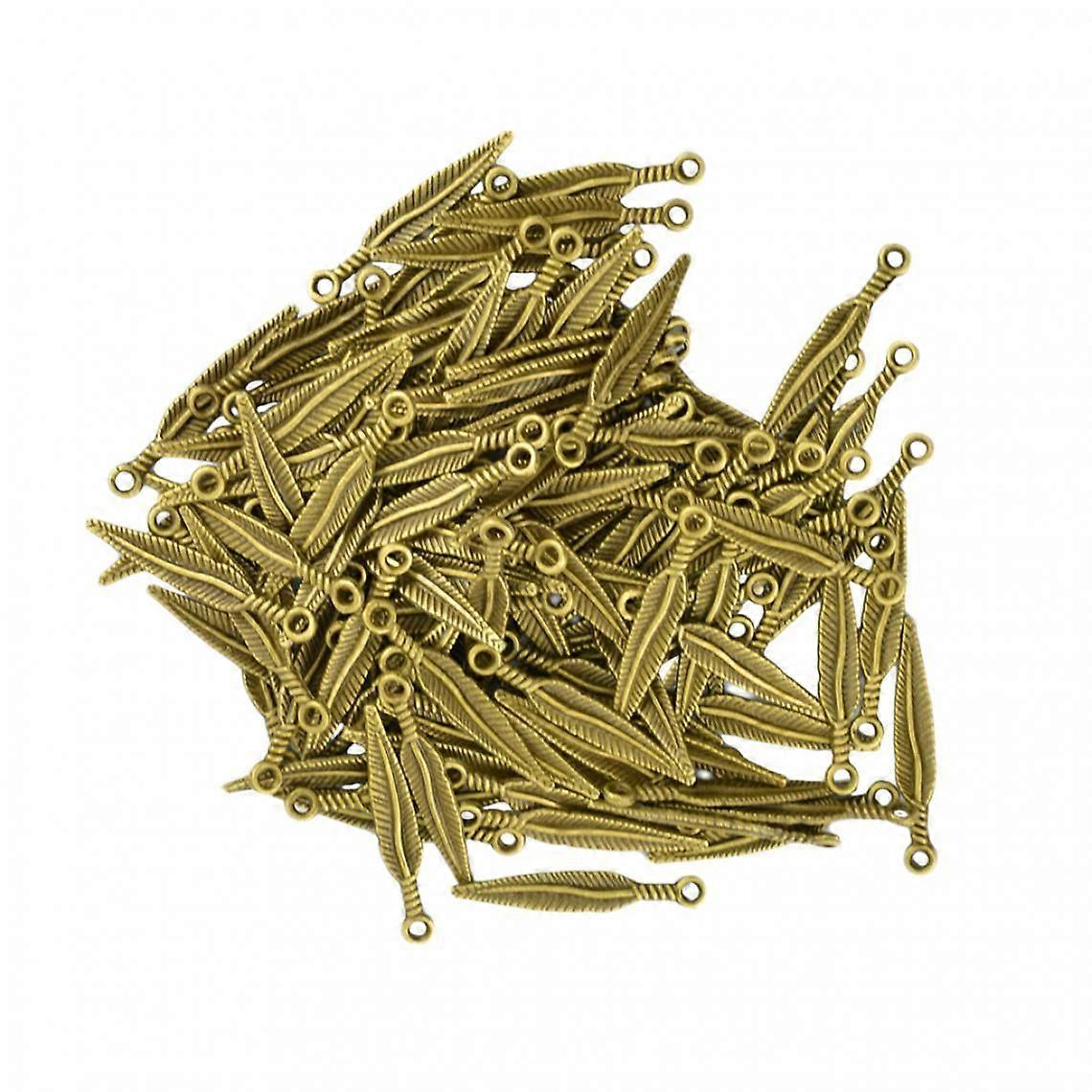 100 Piece Antique Bronze 3d Feather Metal Charms Pendants Jewelry