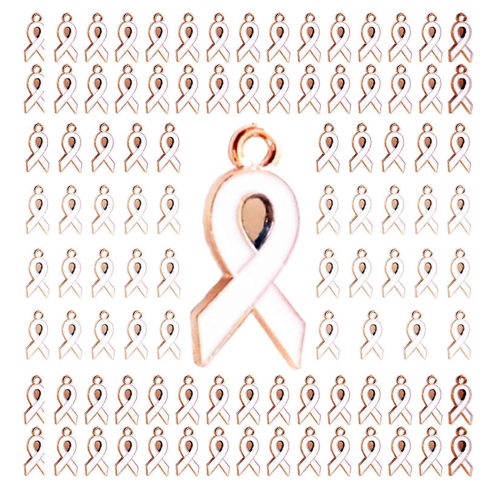 100Pieces Ribbon Pendants Long Lasting Breast Cancers Awareness Charm Hope Ribbon Pendant DIY Earring Dangle Accessory White