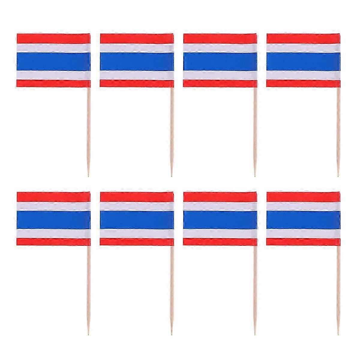 100pcs Wooden Flag Toothpicks National Day Decoration Cupcake Toppers Food Toothpick (Thailand)