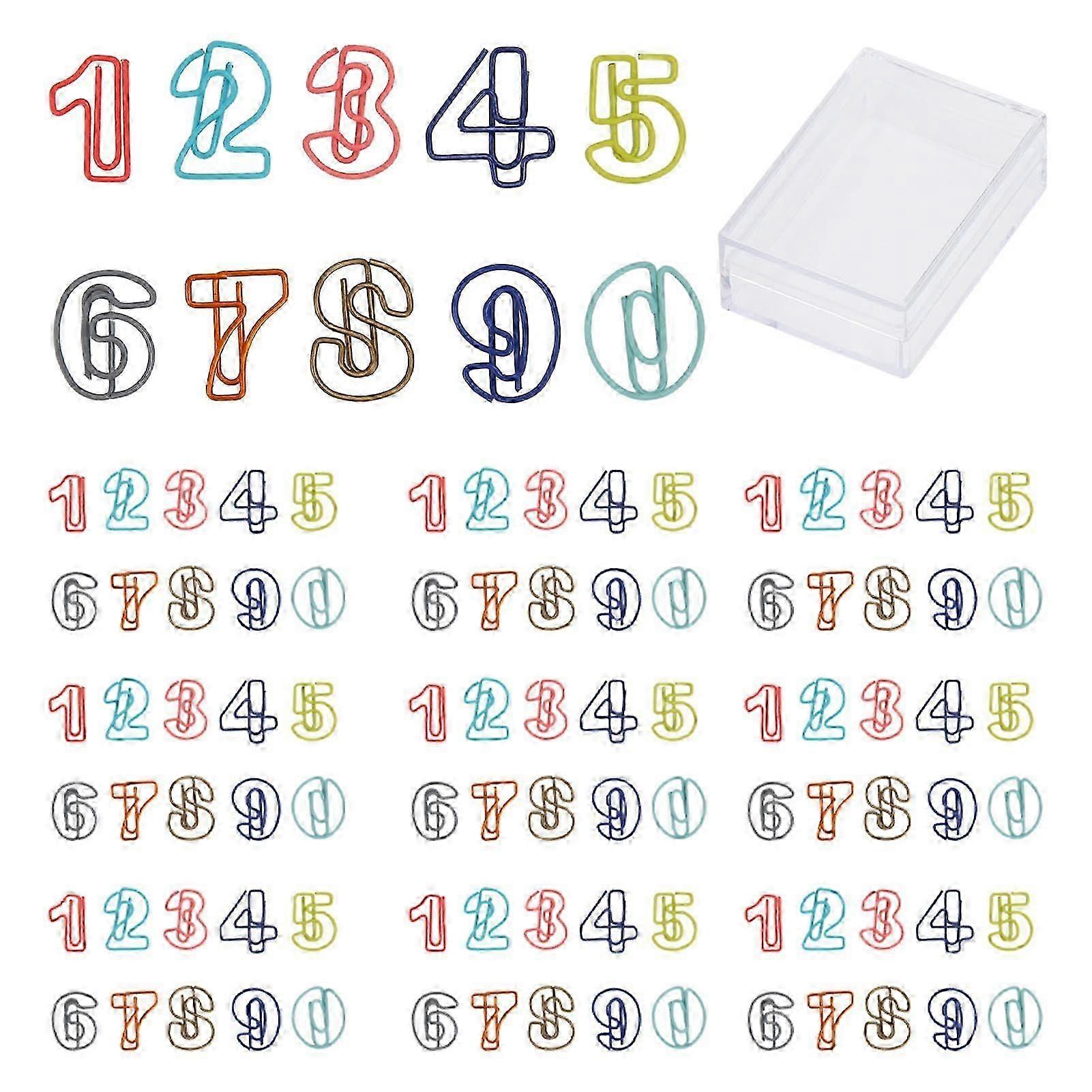 100Pcs Cute Paper Clips Numbers Style Rich Colors Anti Slip Strong Clamping Fancy Paperclips for Working Study Home