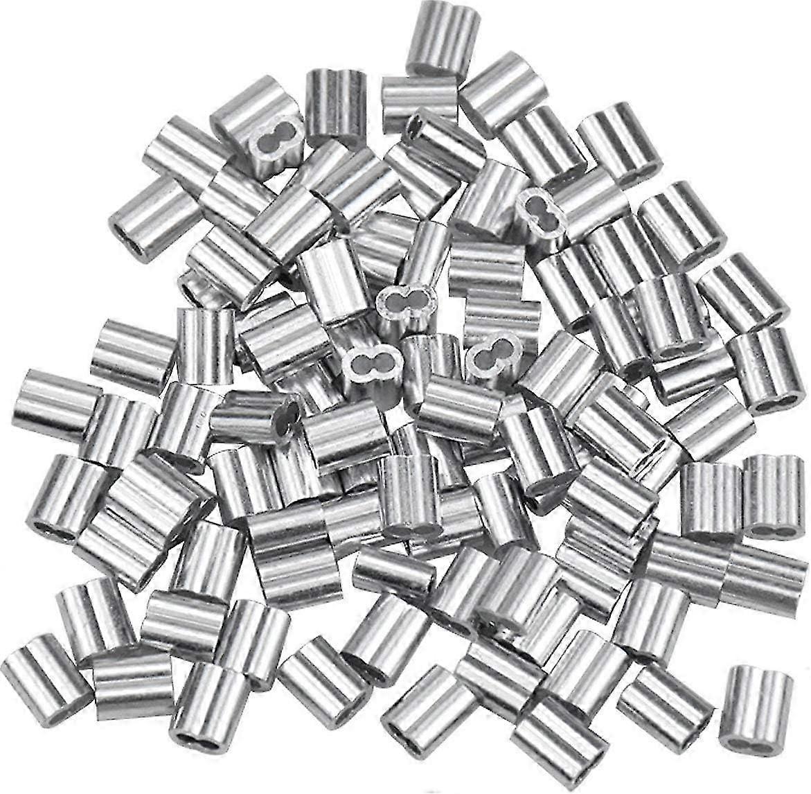 100 Pcs Aluminum Sleeves, Wire Rope Aluminum Ferrules, Aluminum Crimp Clip with Double Ferrules for Wire Ropes(1.5mm)