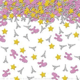 100pcs Eiffel Tower Confetti, Pink Glitter Paris Table Confetti for Bridal
