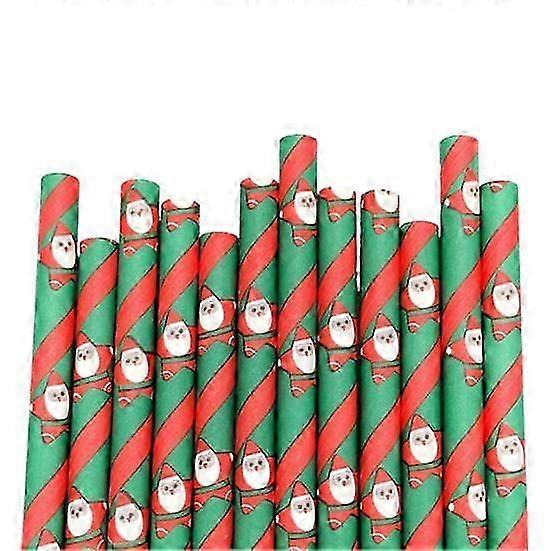 100Pcs Christmas Straws Festive Print Disposable Paper Drinking Straws for Christmas New Year Party
