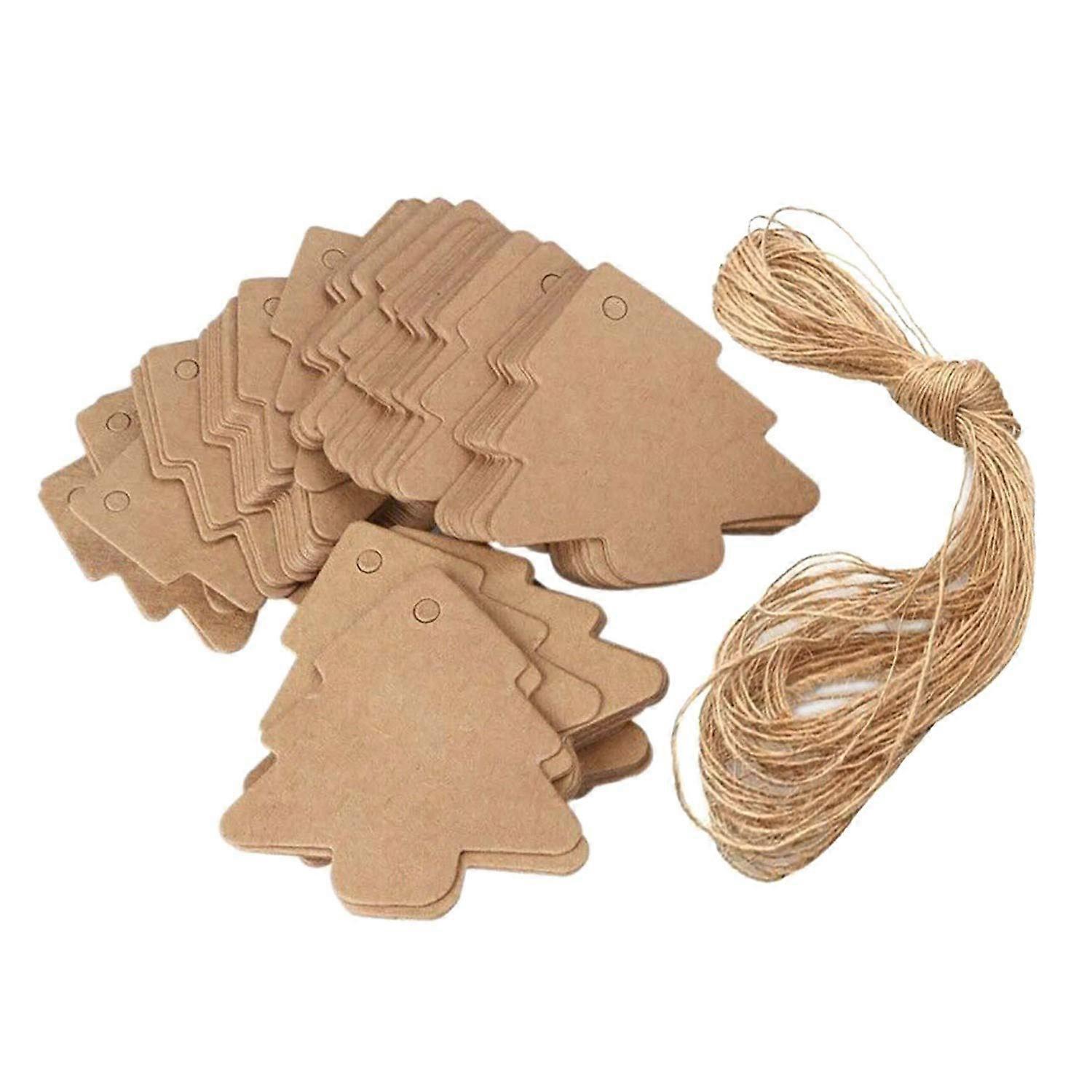 100 pcs Christmas Tree Tags Kraft Paper Hanging Ornament Gift Tags Parcel Tags Luggage Label String Pendant Decal