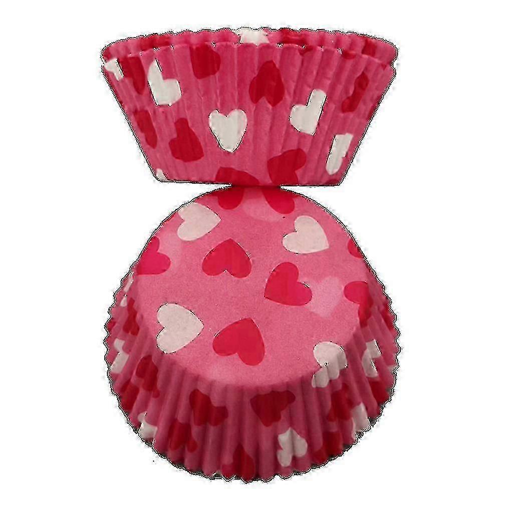 100pcs Heart Mark Muffin Cupcake Wrappers, Oil-proof Paper Cases, for Home DIY Baking, Birthday Wedding Party Decorations
