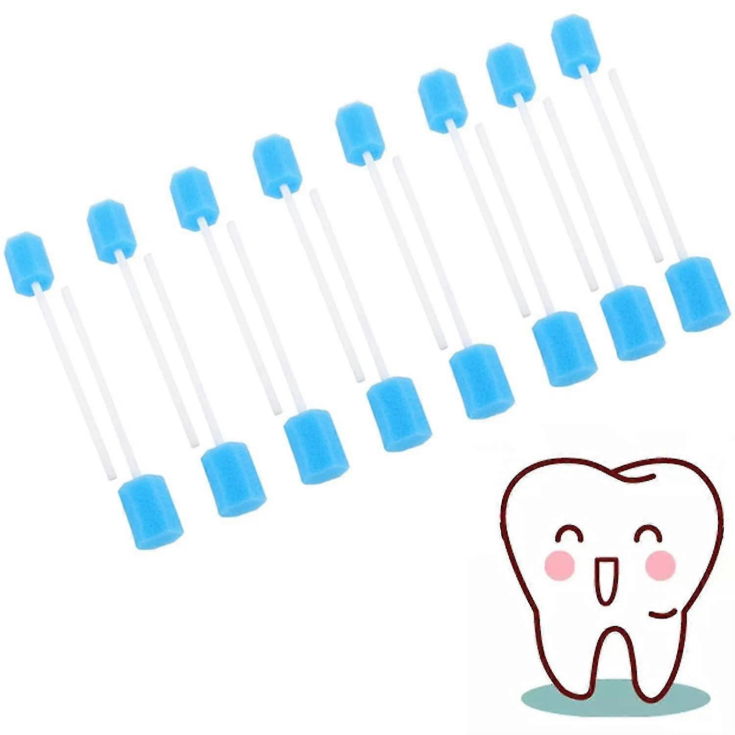 100 Pcs Disposable Oral Swabs Sponge Unflavored Mouth Swabs Human/pets Tooth Cleaning Sponge For Mouth Health, Individually Wrapped, Blue
