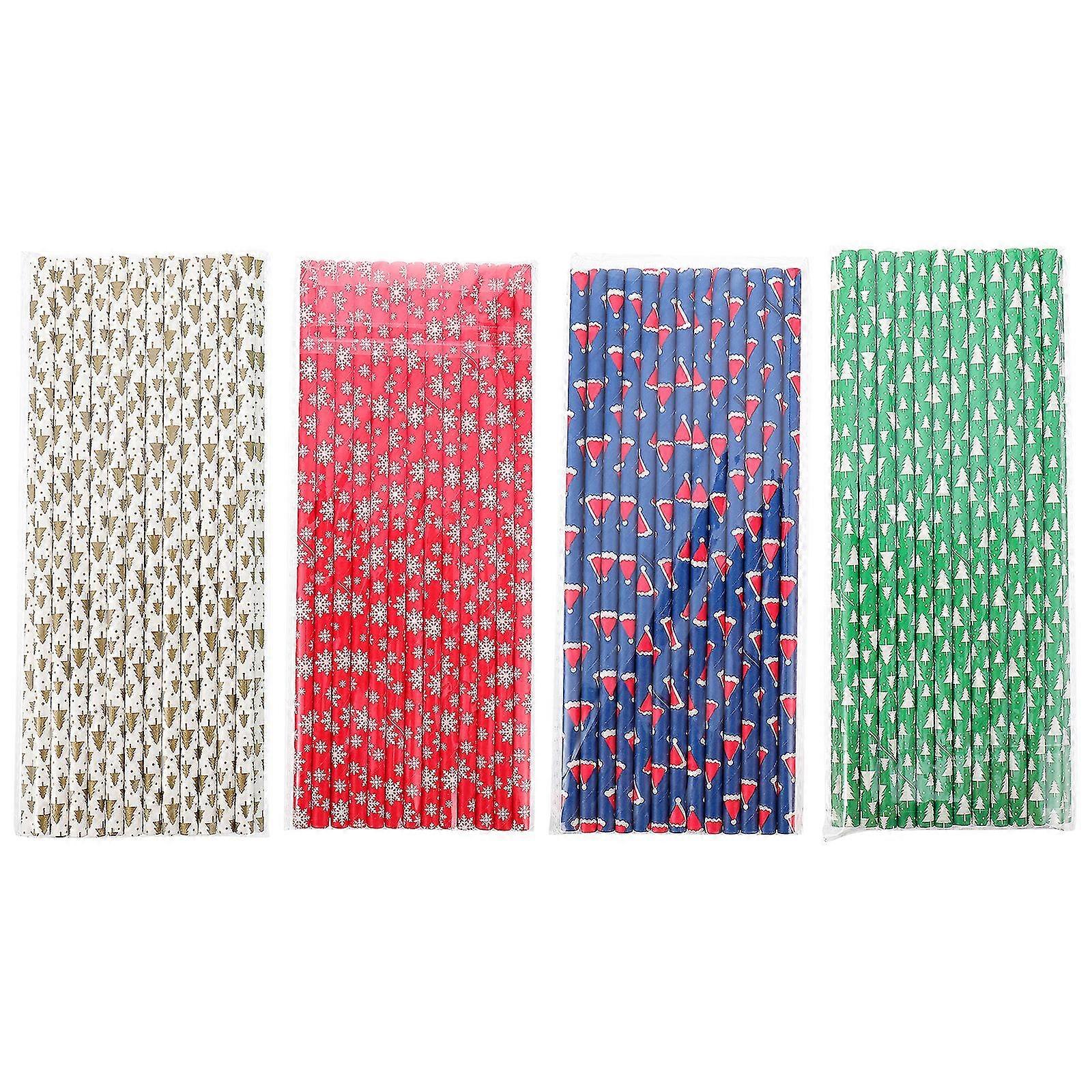 100 Pcs Disposable Paper Straws Paper Drinking Straws Decorative Drinking Straw Xmas Drinking Straws Christmas Party Supplies