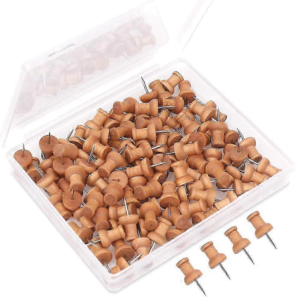 100pcs Wooden Push Pins, Cork Notice Board Thumb Tacks Wooden Map Pins Drawing Board Pins