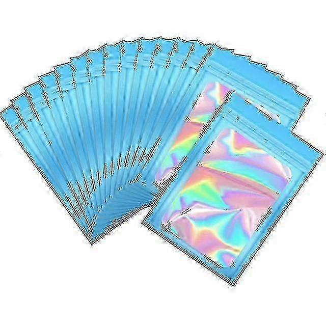 100 Pc Smell Proof Mylar Bags Resealable Odor Proof Bags Holographic Packaging Pouch Bag With Clear Window Compatible With Food