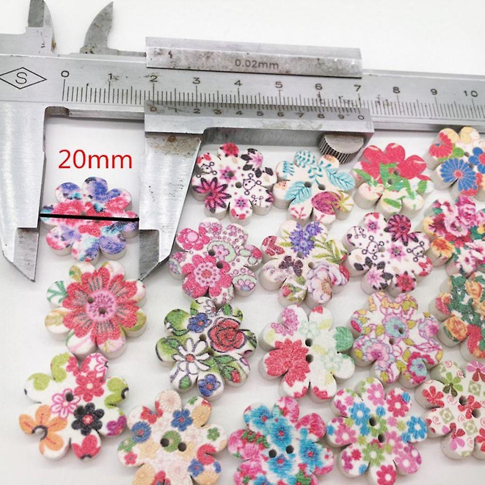 100 Pcs/pack Colors Printed Flower Wooden Buttons For Sewing Craft Supplies