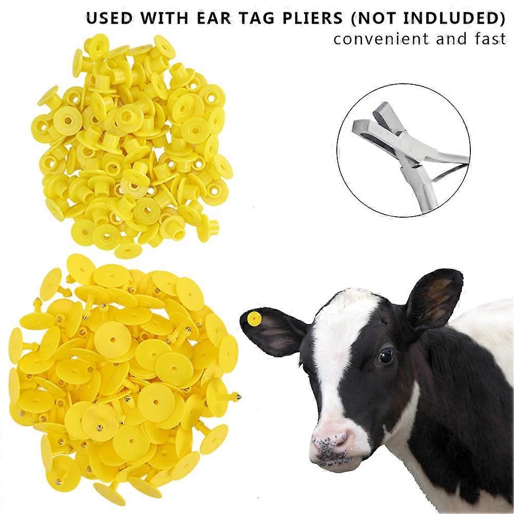 100 Pcs Plastic Animal Ear Tags Anti-lost Marker for Cattle Sheep Pig Yellow
