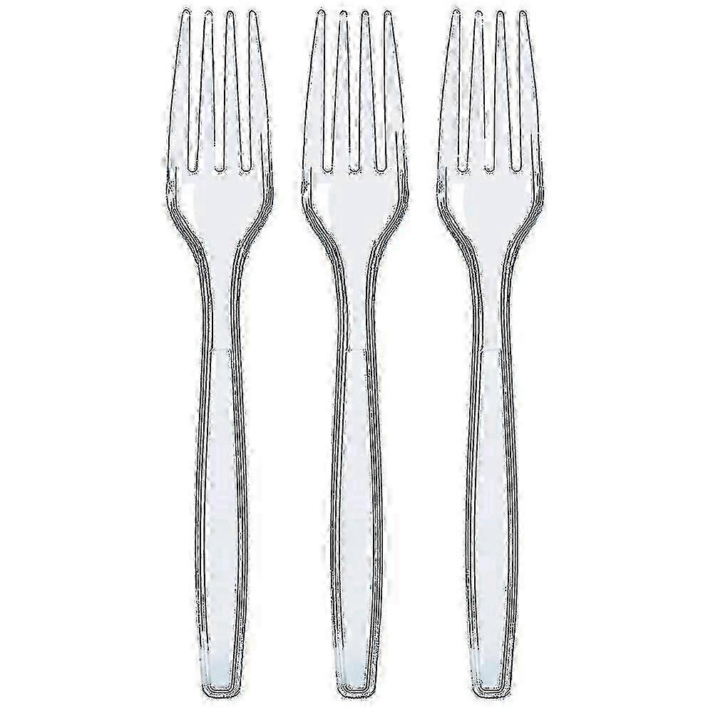 100 Pcs Clear Plastic Forks Strong Heavy Duty Reusable