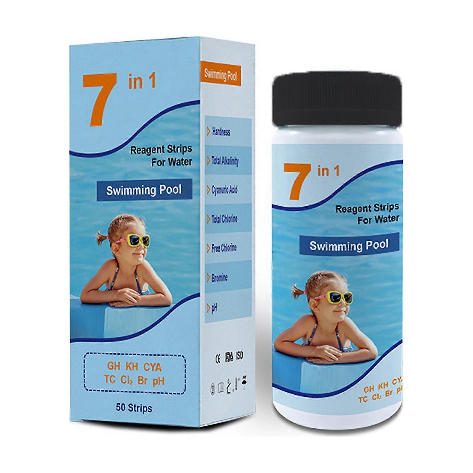 The appearance of this product is a thin strip, one end is arranged with the detection block according to the scientific distance, and the other end is a hand- position. One test strip of this product can simultaneously detect seven important Elements of the sample. After 1 minute, the total hardness, free residual chlorine, bromine, total chlorine, cyanuric acid, total , and ph of the sample water can be detected. How to use when testing: 1. Immerse the colored part of the test strip in water and take it out after 2 seconds. 2. Lay the test strip flat and wait for . 3. Compare the test strip with the color chart on the bottle body and complete the reading within to obtain accurate results. Comparison of test results: 1. Please use the color code card on the bottle to compare colors. 2. There are seven rows of color blocks on the color code card, which correspond to the seven test blocks on the test strip. Compare the test block with the color code card and read within to get accurate results. Note: 1. Do not put wet into the bottle. 2. Do not touc h or contaminate the test block on the test strip with your hands. 3. Tighten the bottle cap each time after removing the test strip. 4. Compare the color of the test strip under good light to get the best reading. 5. Store in cool, dry and dark conditions. 6. It is recommended to use up within 90 days after opening. Color: As Shown Material: Paper Package Contents: 100pcs Swimming pool test paper Only the above package content, other products are not included. Note: Light reflection and different displays may cause the color of the item in the picture a little different from the real thing. The measurement allowed error is +/- 1-3cm. Note: 1. Do not put wet fingers into the bottle. 2. Do not touc h or contaminate the test block on the test strip with your hands. 3. Tighten the bottle cap each time after removing the test strip. 4. Compare the color of the test strip under good light to get the best reading. 5. Store in cool, dry and dark conditions. 6. It is recommended to use up within 90 days after opening. The appearance of this product is a thin strip, one end is arranged with the detection block according to the scientific distance, and the other end is a hand-held position. How to use when testing: 1. Immerse the colored part of the test strip in water and take it out after 2 seconds. 2. Lay the test strip flat and wait for . 3. Compare the test strip with the color chart on the bottle body and complete the reading within to obtain accurate results. One test strip of this product can simultaneously detect seven important Elements of the sample. After 1 minute, the total hardness, free residual chlorine, bromine, total chlorine, cyanuric acid, total , and ph of the sample water can be detected. Comparison of test results: 1. Please use the color code card on the bottle to compare colors. 2. There are seven rows of color blocks on the color code card, which correspond to the seven test blocks on the test strip. Compare the test block with the color code card and read within to get accurate results.