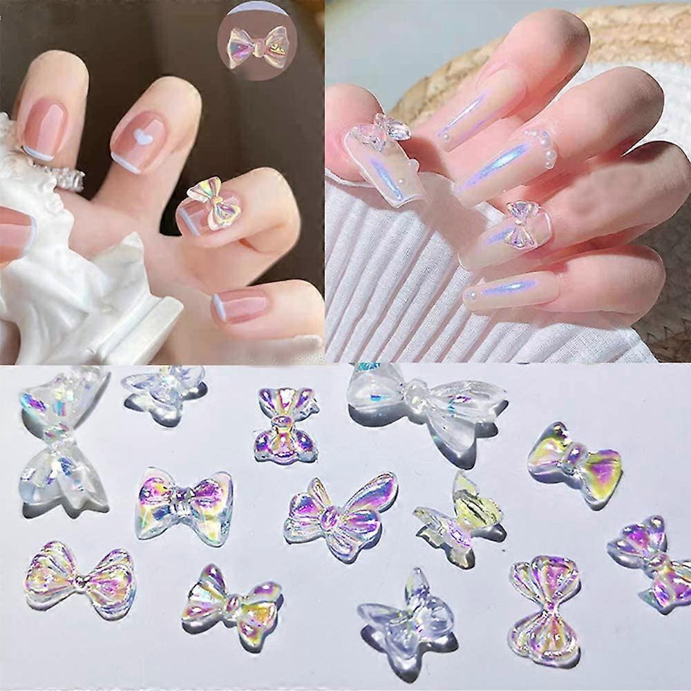 100 pcs Bow Nail Decoration 3D Charm Decals Stickers Accessories Crystal 10 Styles Bow Sparkle Design Nail Decoration Flatback Bow DIY Scrapbooking Cr
