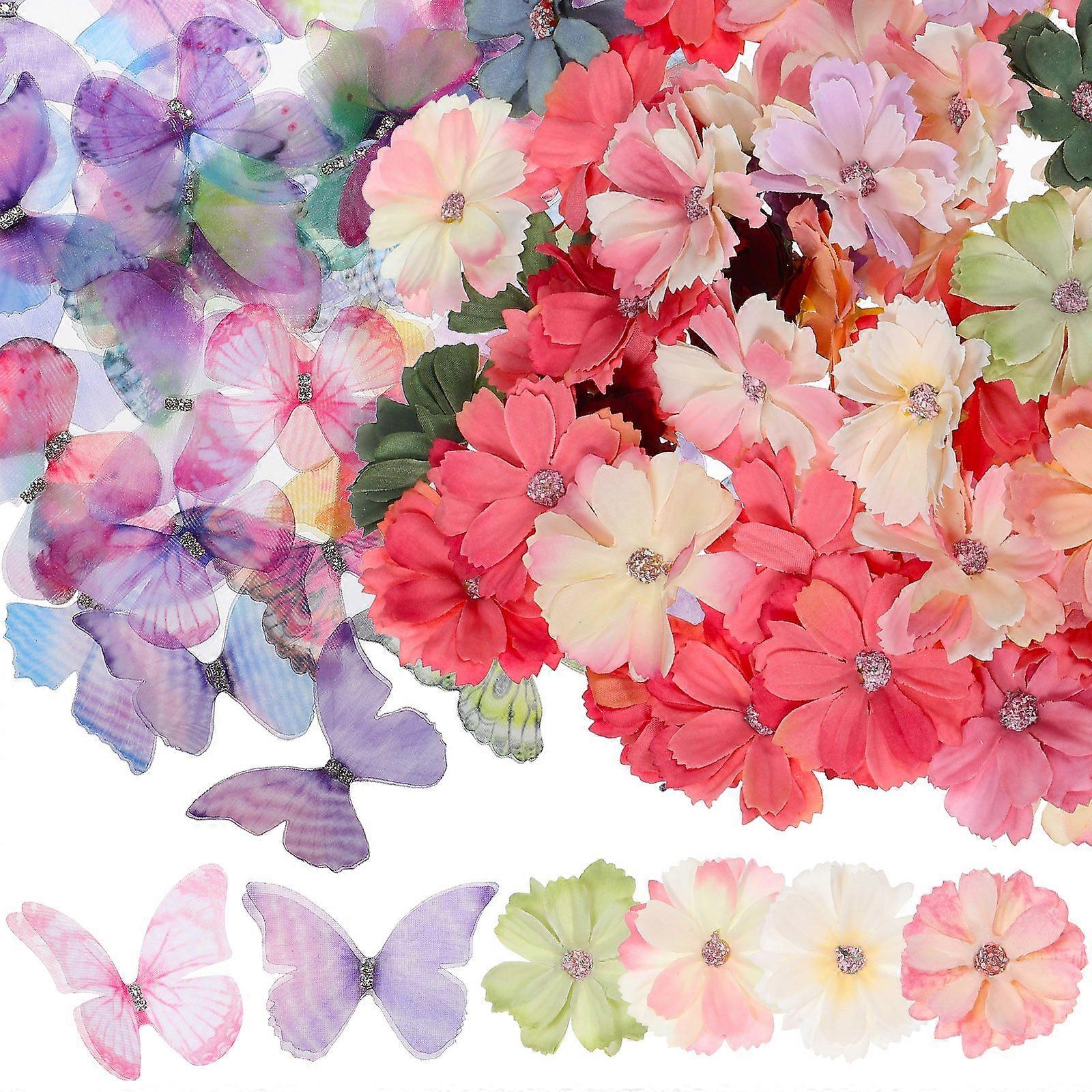100 Pcs Butterfly Flower Set Faux Floral Heads Craft Flowers Wedding Ornament Appliques