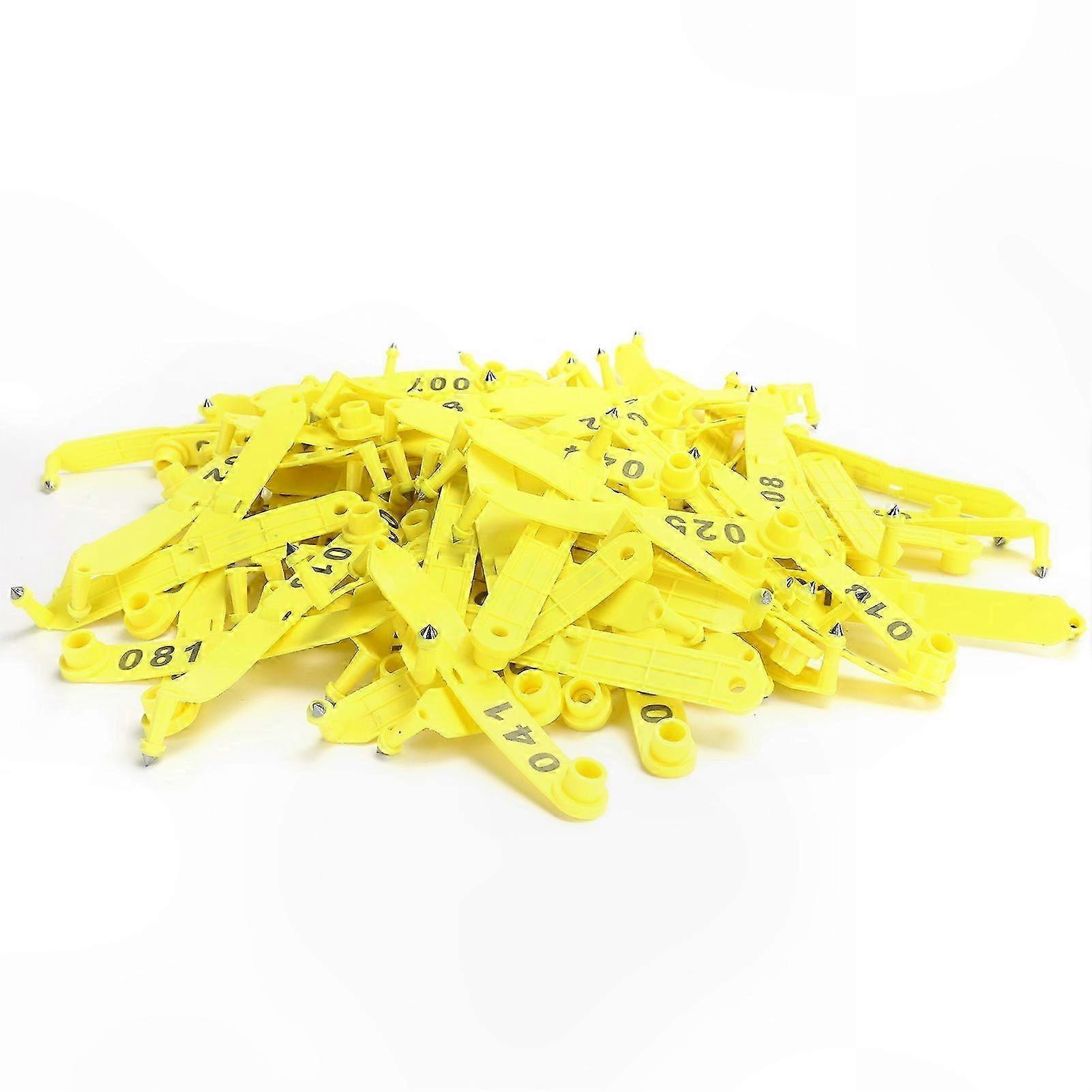 100Pcs Yellow Double Folded Sheep Ear Tag with Integrated Number for Animal Identification