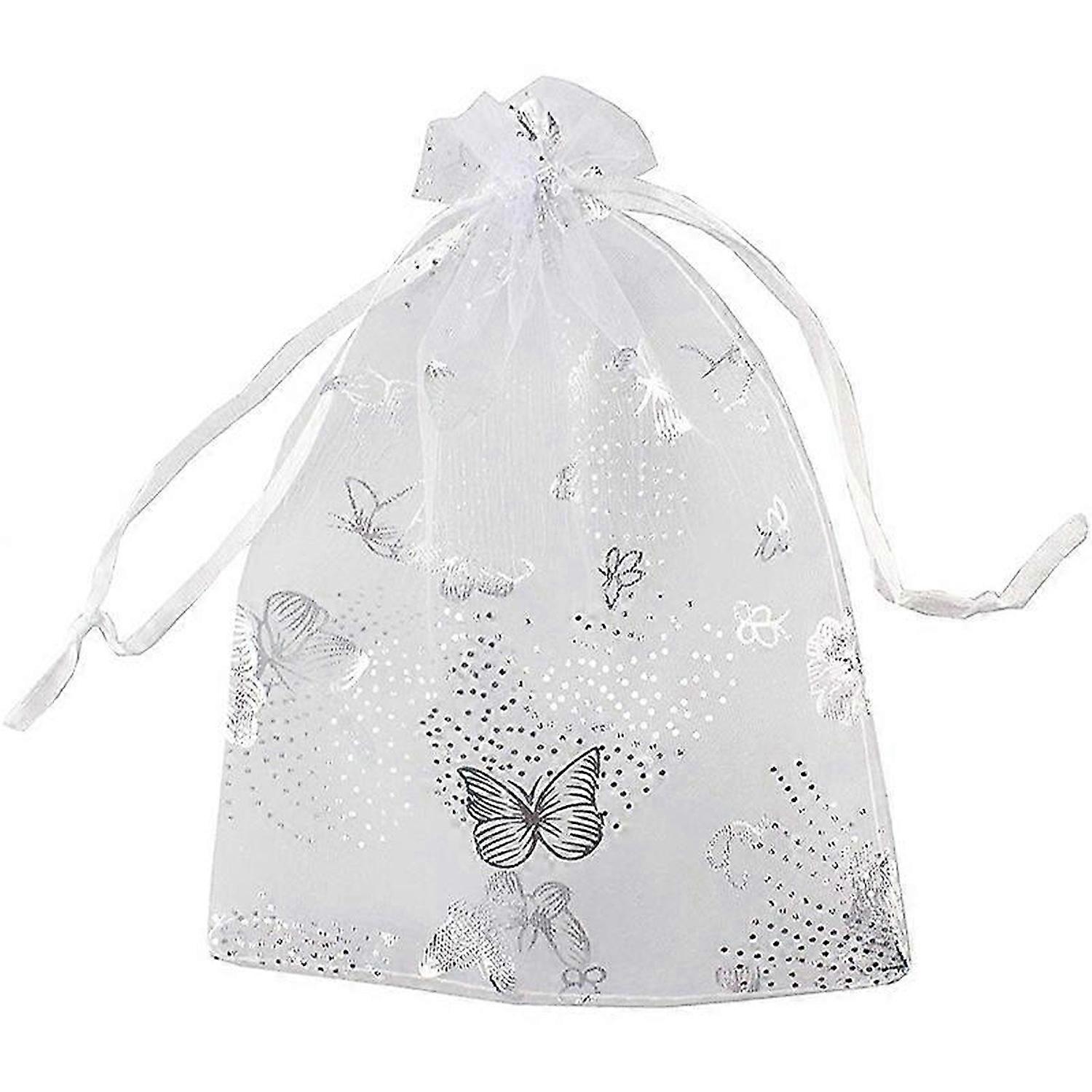 100Pcs 9X12cm Butterfly Organza Jewelry Gift Pouch Candy Pouch Drawstring Wedding Favor Bags White