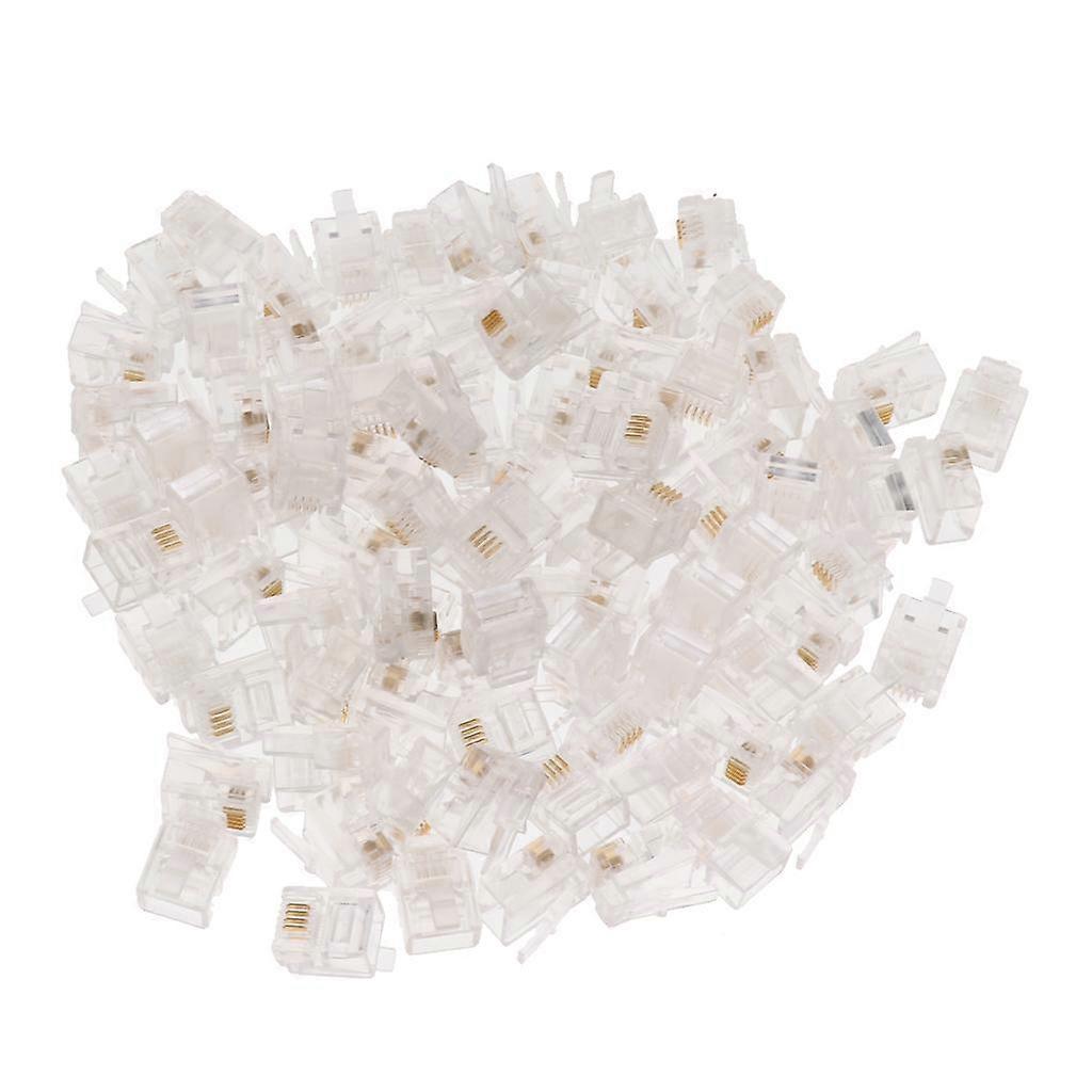 100Pcs RJ11 RJ-11 6P4C Modular Plug Telephone Cord Crimp Connector