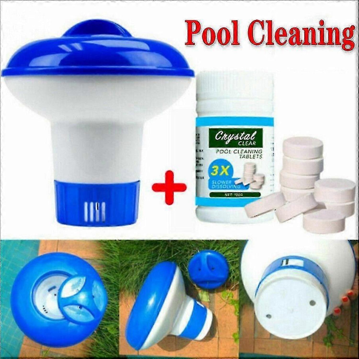 100 Chlorine Tablets +Floating Chemical Dispenser Hot Tub Swimming Pool CleaningE