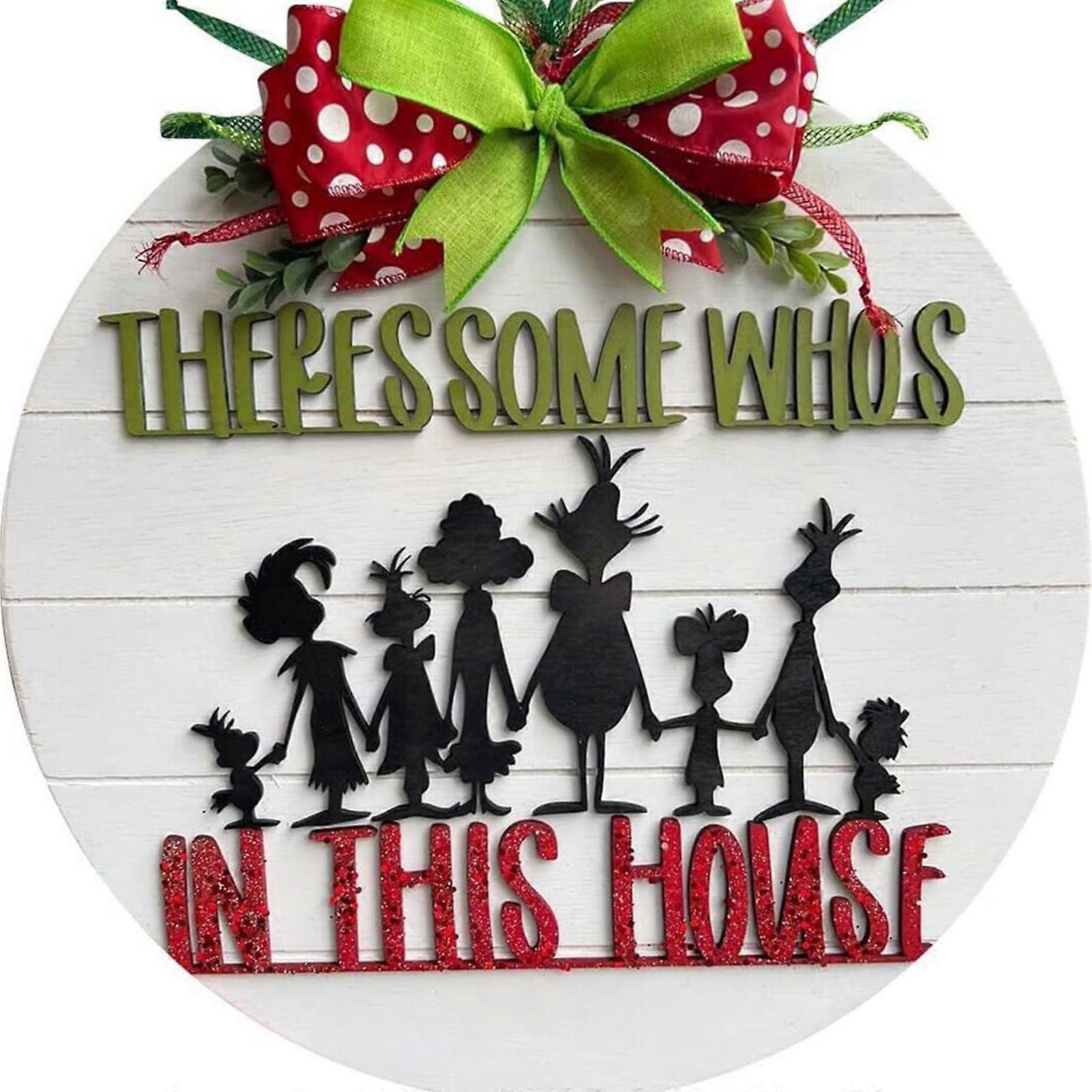 100% NEW Christmas Wreaths Decor Sign Front Door, Round Wood Hanging Sign Porch Decorations