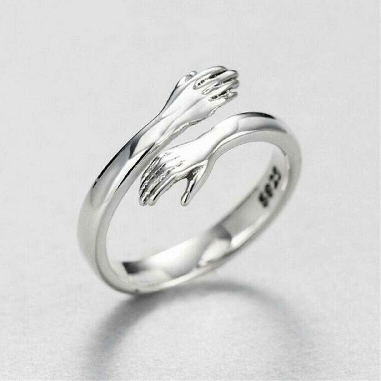 100% New,925 Adjustable Sterling Silver Love Hug Ring Band Open Finger Fully Jewellery