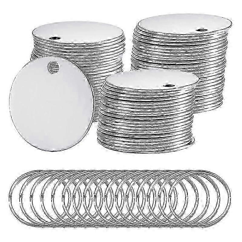 100 Pack Round Stamping Blanks Stainless Steel Blank Tags with Hole Silver Metal Blank Dog Tags Polished Blank Coins DS
