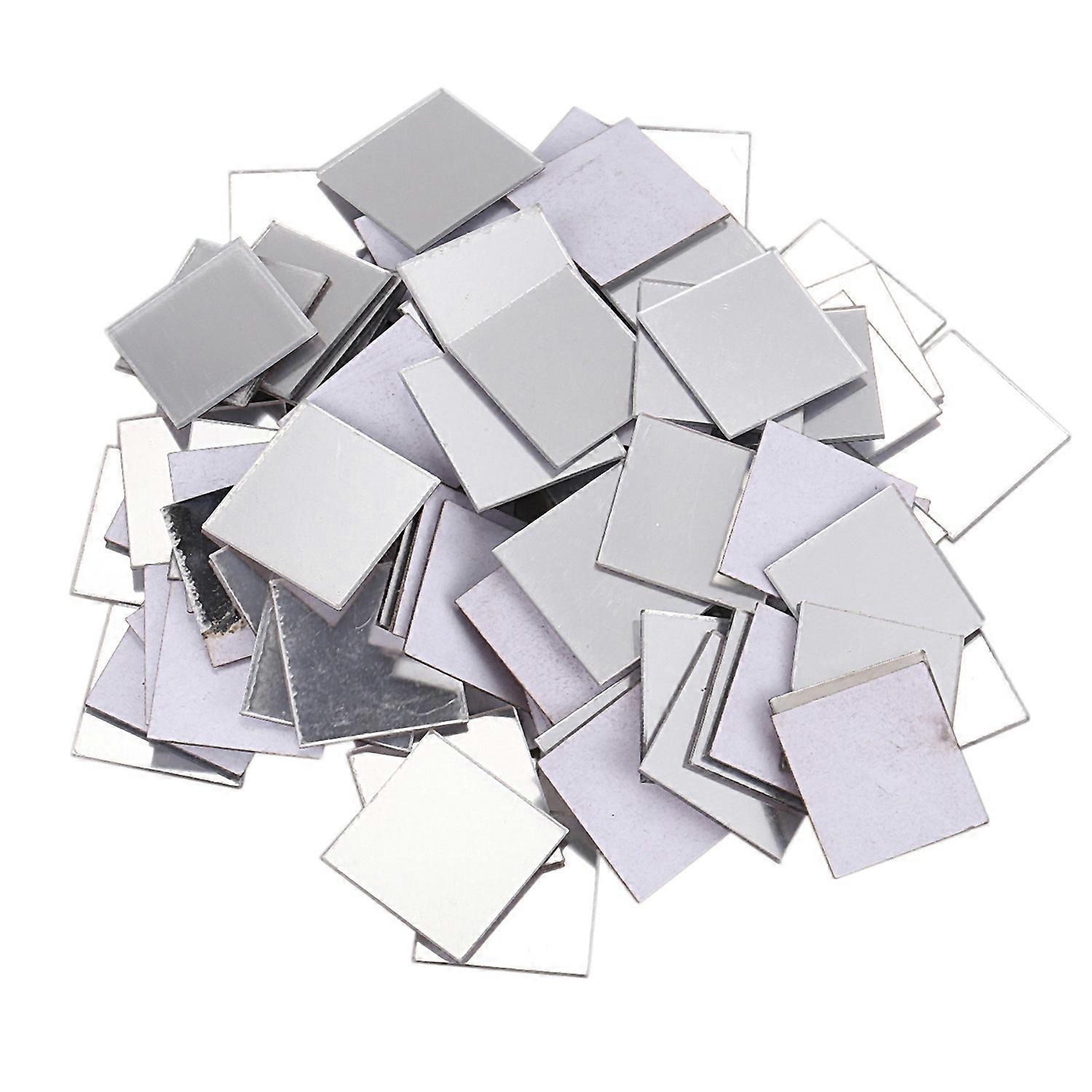 100 Piece Mirror Tile Wall Sticker 3D Decal Mosaic Stick (Silver)