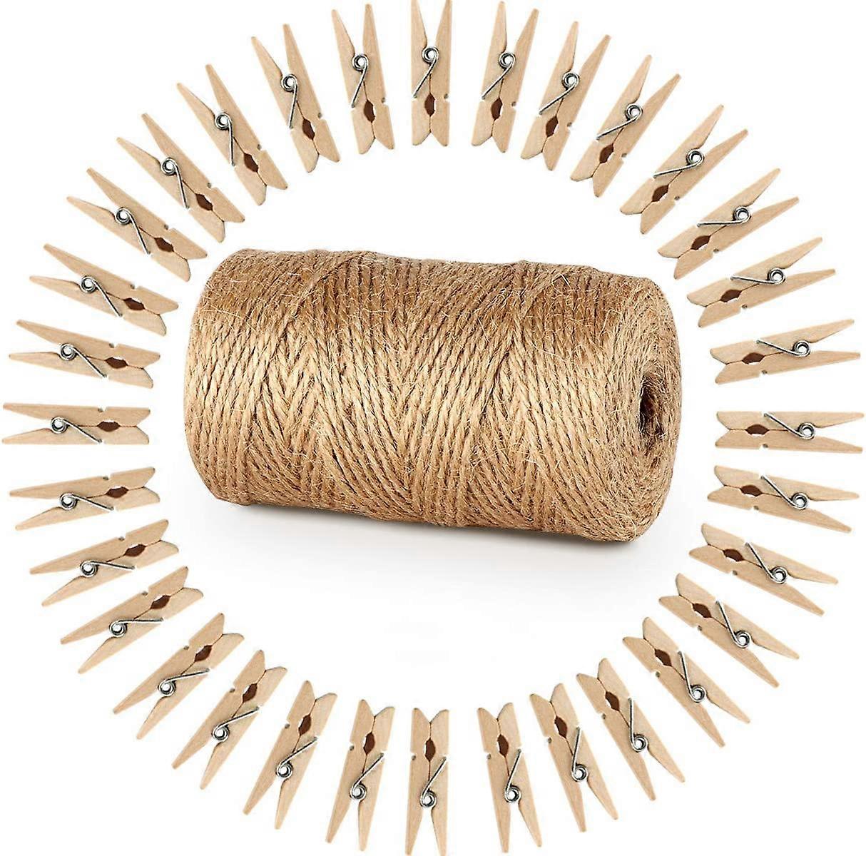 Garden cord with 100 clothespins wooden craft cord jute cord 100M natural jute cord clothespins packaging guest gift