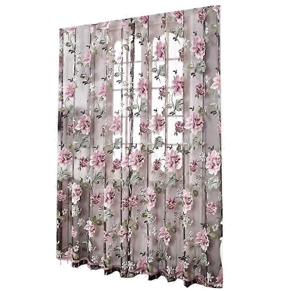 100 * 200cm Elegant Net Curtains Floral Tulle Voile Door Window Curtain Drape Panel Sheer Curtains
