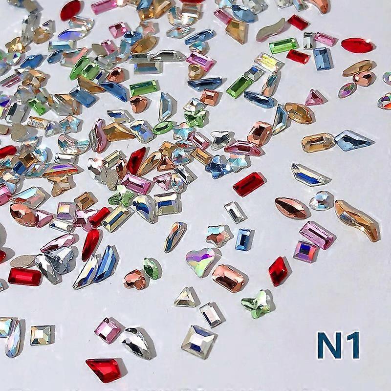 Features: 1.This nail art jewelry adopts a unique special-shaped design, making your nails look more fashionable and beautiful. Add a unique and bright color to your nail art. 2.Can be used to design your own nail art, nail art designs, highlights and other design elements. 3.We provide a variety of different colorful special-shaped nail art jewelry for you to choose from, which can achieve a variety of different nail art designs, allowing you to match and innovate as you like. 4.You can also use them to decorate your home, cell phone's case, glasses, made card, body art, etc. 5.This nail art jewelry is also an ideal gift for friends or family who love manicure. Whether it is a birthday, holiday or special occasion, it can make the person who receives the gift feel your heart. Specification: 100% brand new quality Item Name:Nail Art Decoration Material:Glass, crystal Color:As the picture show Size:As the picture show(1inch = 2.54cm) How to use: Step 1: Apply a layer of base gel and cure it. Step 2: Apply a layer of your favorite nail gel color and cure it. Step 3: Apply glue to the nail surface for decoration. Step 4: Put the accessories in the right place. Step 5: Apply top coat and cure it. Package includes: 100pcs Nail Art Decoration Note: 1.Due to the different monitor and light effect, the actual color of the item might be slightly different from the color which is showed on the pictures. 2.Please forgive 1 cm/0.39"-3 cm/1.18" measuring deviation due to manual measurement.