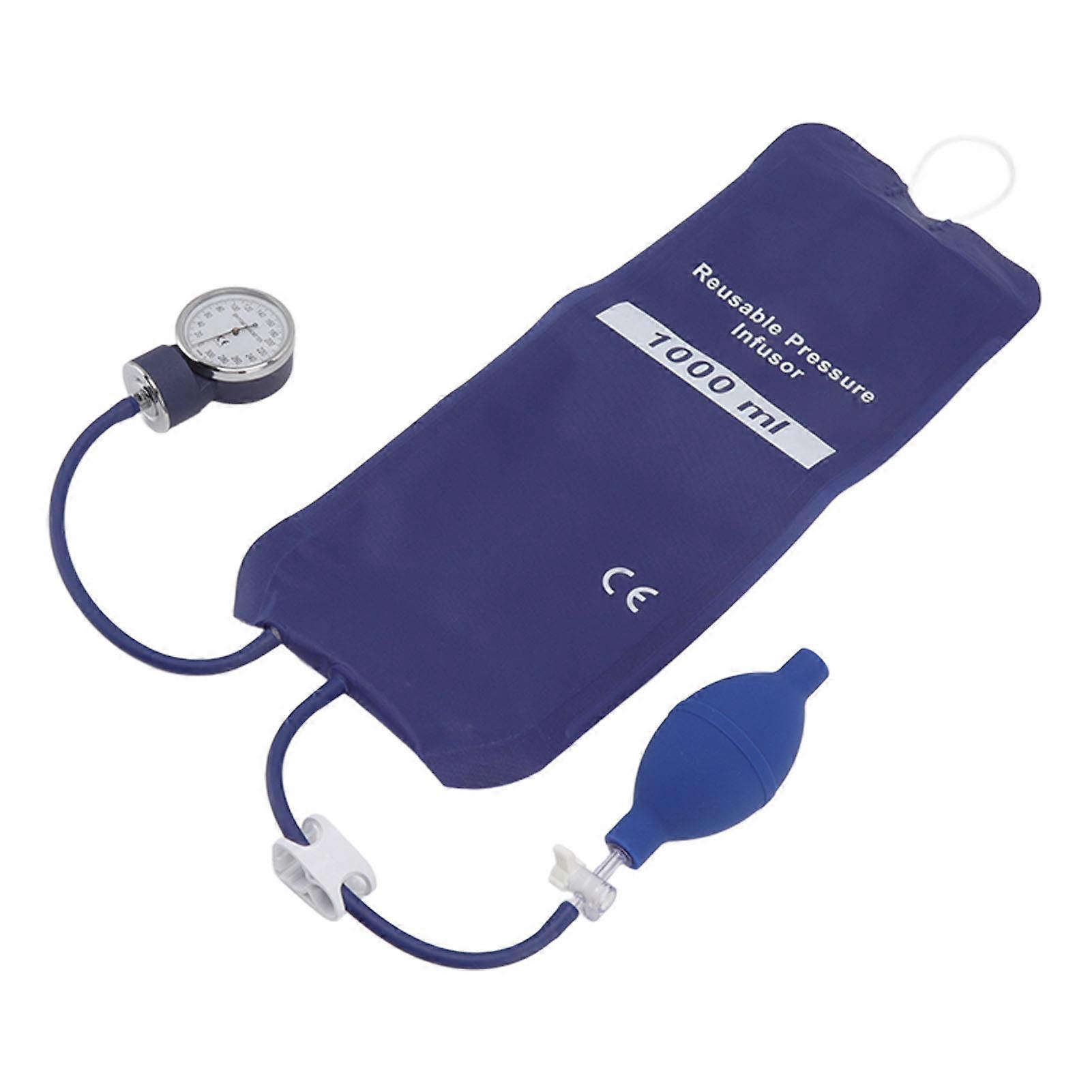 1000ml Pressure Infusion Bag TPU Reuseable with Gold Pressure Gage Blue Medical Pressure Bag for Outdoor Emergence ICU