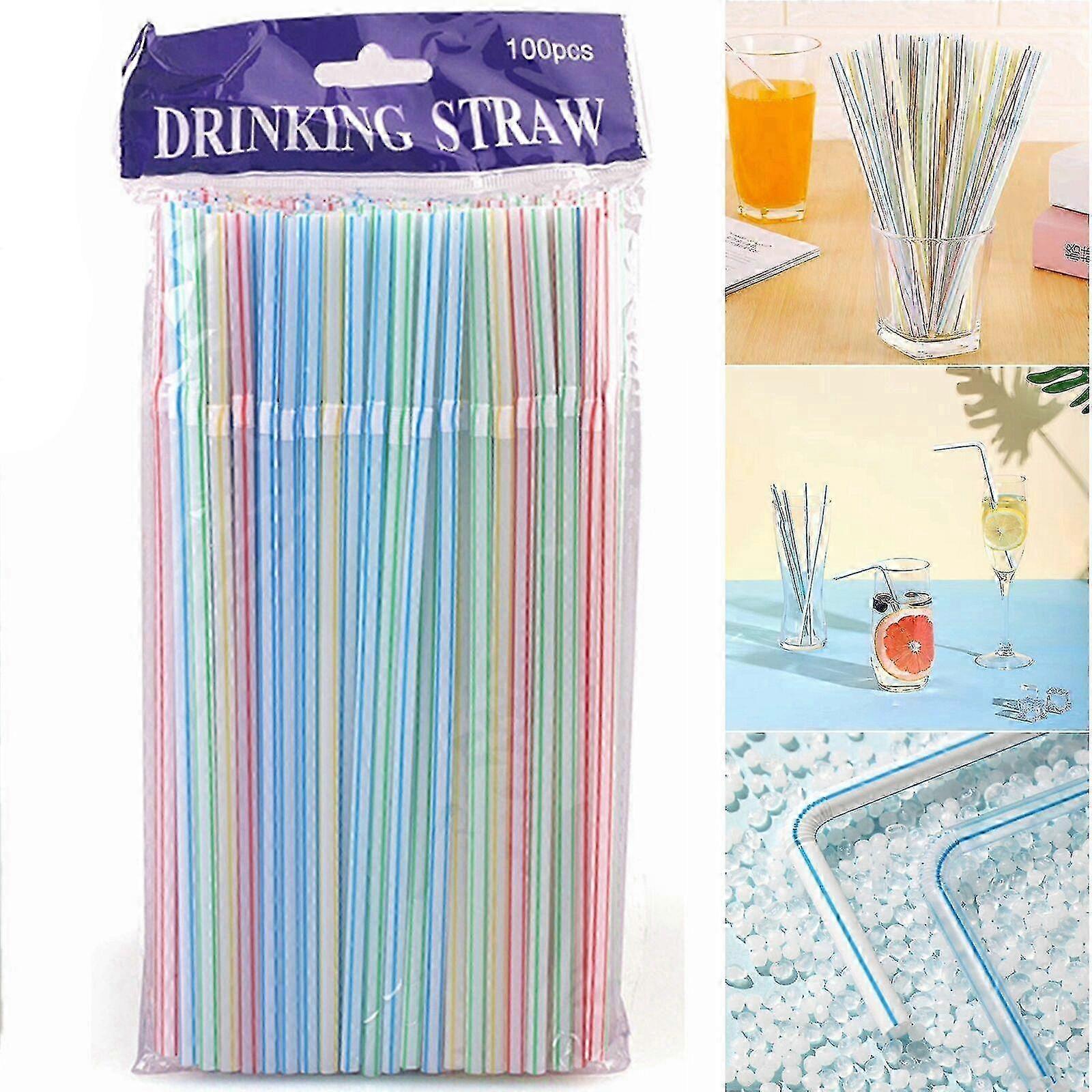 100/200 Straws Bendy Colourful Flexible Plastic Birthday Wedding Summer Party Drink