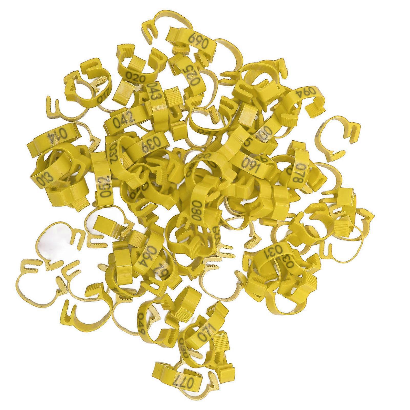 100PCS Yellow Chicken Leg Bands 20mm Numbered 001-100 Tags