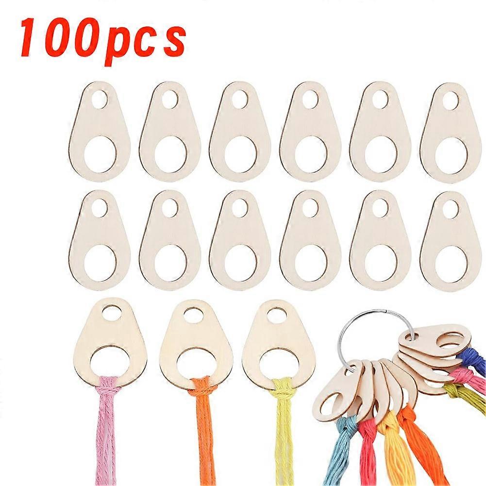 100PCS Wood Thread Drop Embroidery Floss Chips Organization Teardrop Shape Cros Stitchs Tread Bobbins Board Card