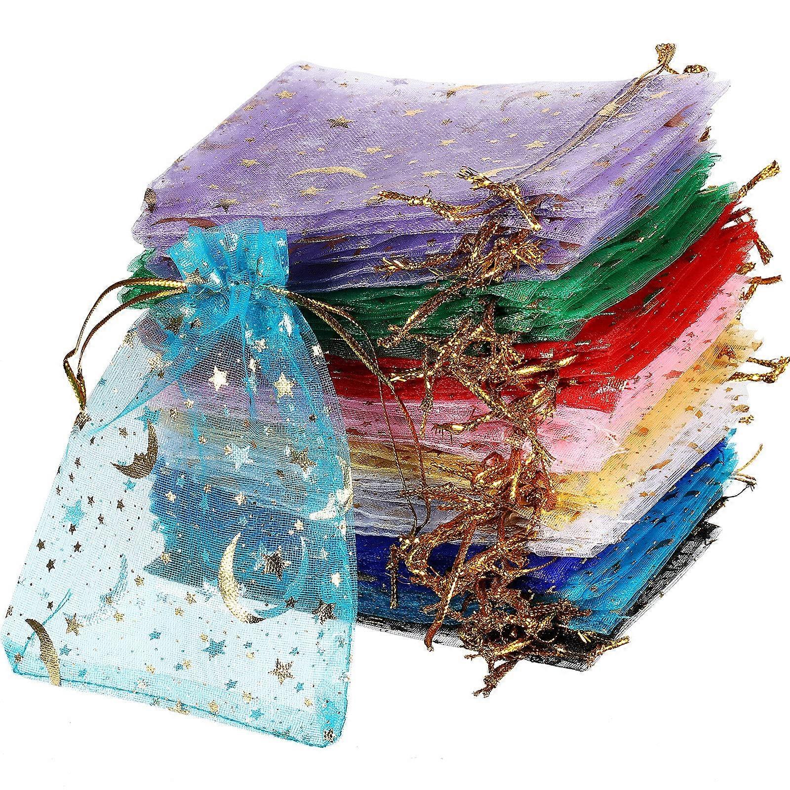 100PCS Organza Bags 3.9X4.7 with Drawstring Jewelry Bags Small Moon Star Mesh Bags for Wedding Party Favor Candy Bags