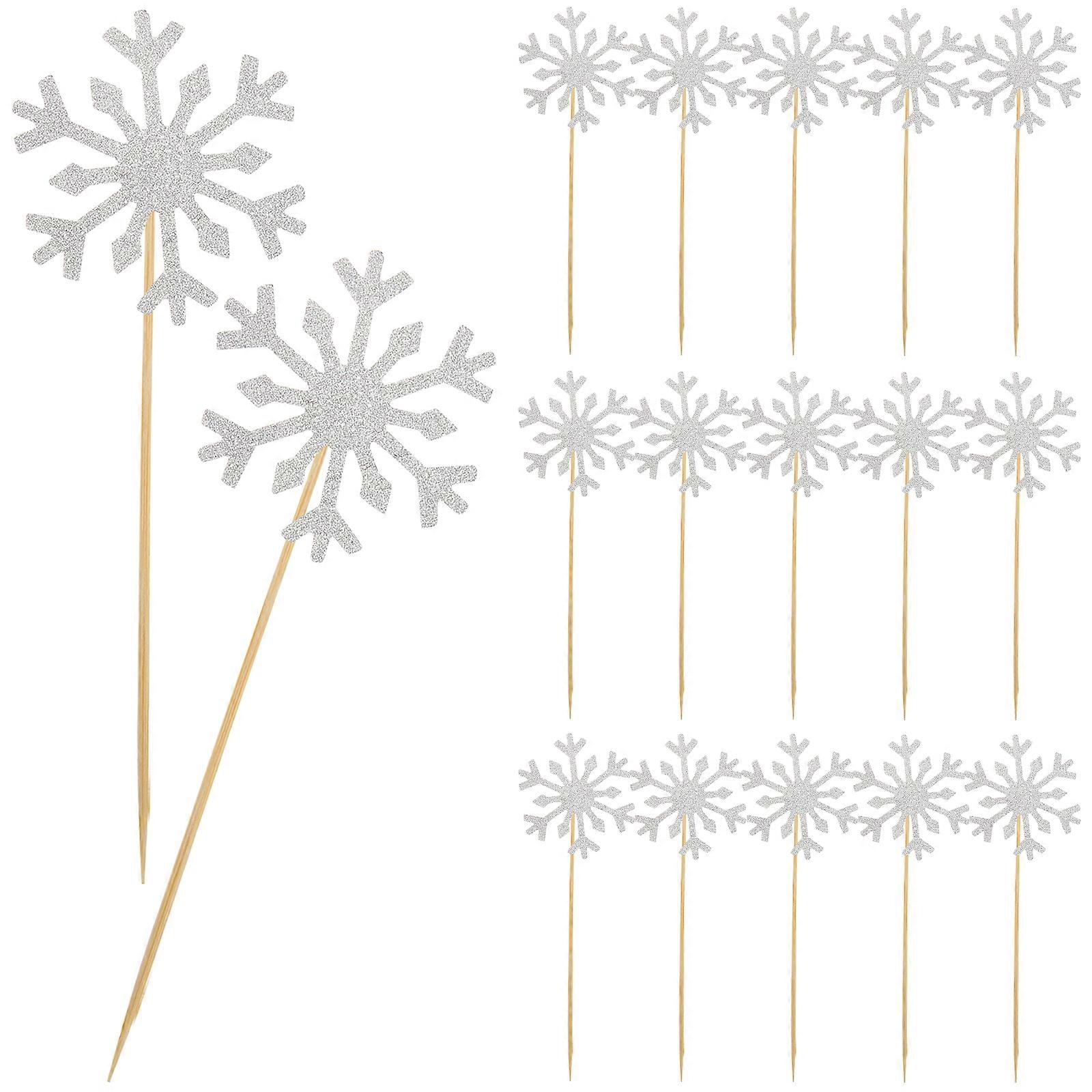 100Pcs Cupcake Toppers Snowflake Cake Picks Cupcake Decor Birthday Party Supplies