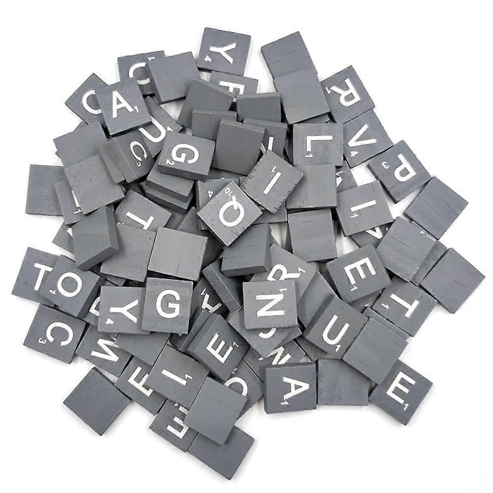 2 Packs of 100PCS Grey Natural Wood Chips DIY 26 English Letters Words Alphabet Puzzle Literacy Box Baby Intellectual Development Wooden Chips