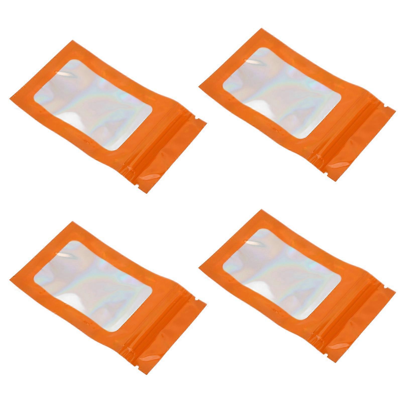 100pcs Ziplock Bags Self Sealing Holographic Reusable Food Storage Bags with Hanging Hole Orange