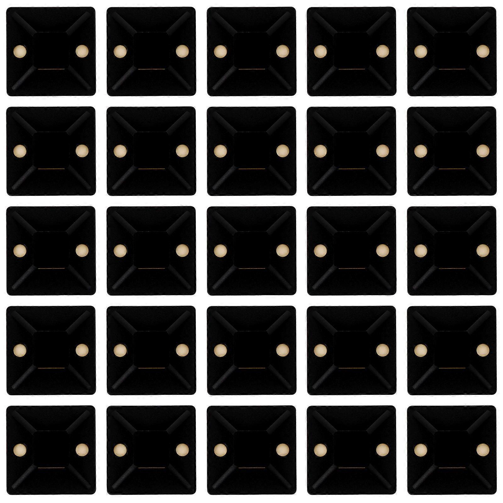 100pcs Square Self Adhesive Cable Tie Mount Base Wire Cable Organizer (Black)