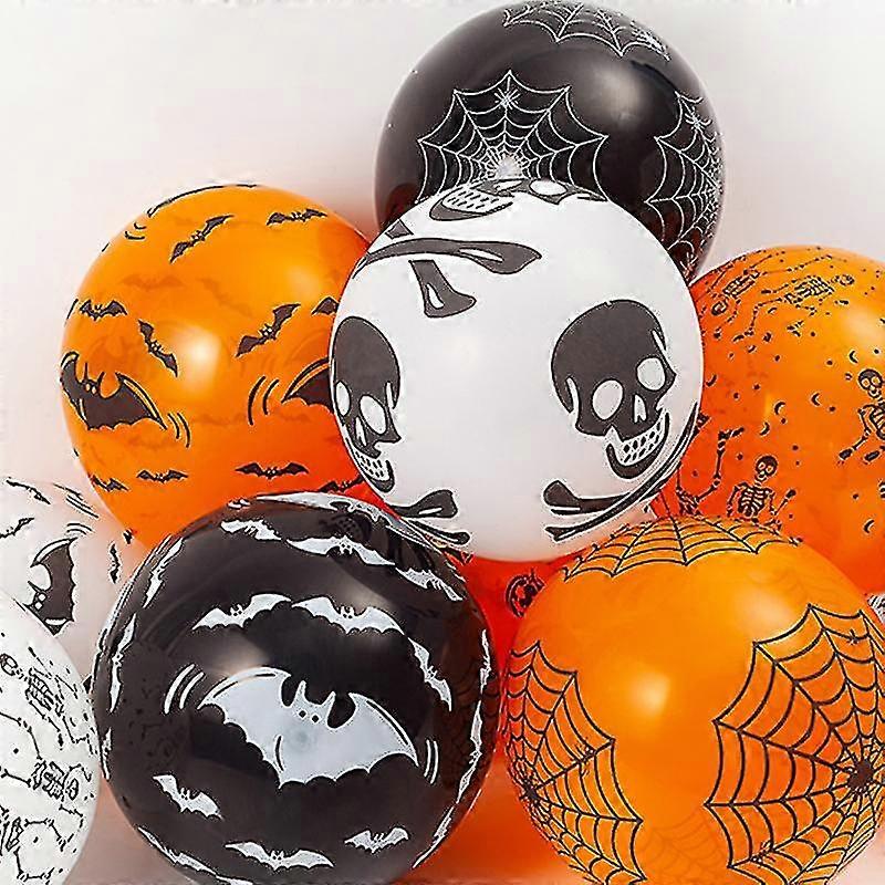 100pcs Halloween Party Balloons 12 Inch Black White Orange Confetti Latex Balloon Pumpkin Bat Ghost Skull Specter Spider Web Balloon For Halloween Par