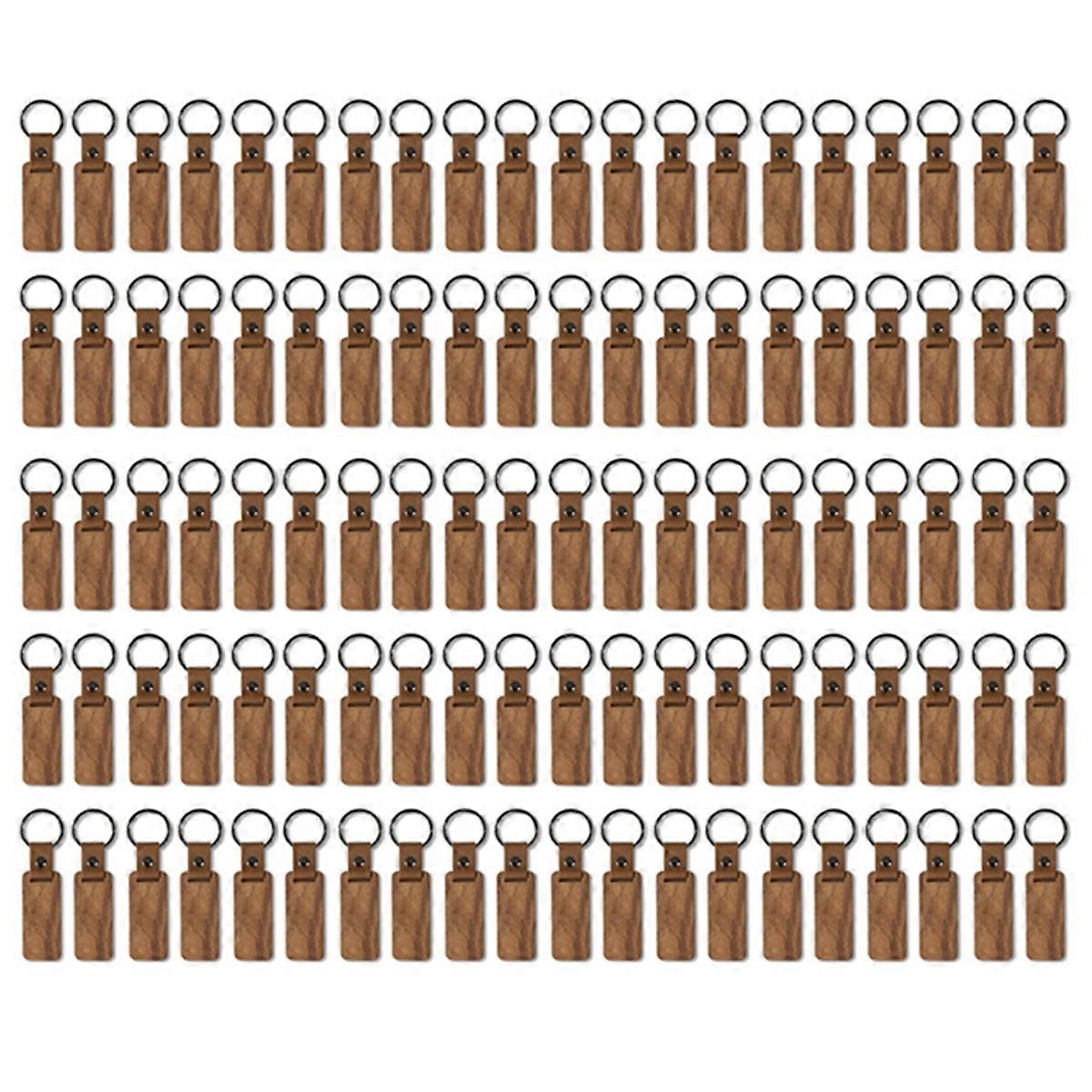 100Pcs Blanks Wooden Keychain Blanks Wood Rectangular Wood Key Chain